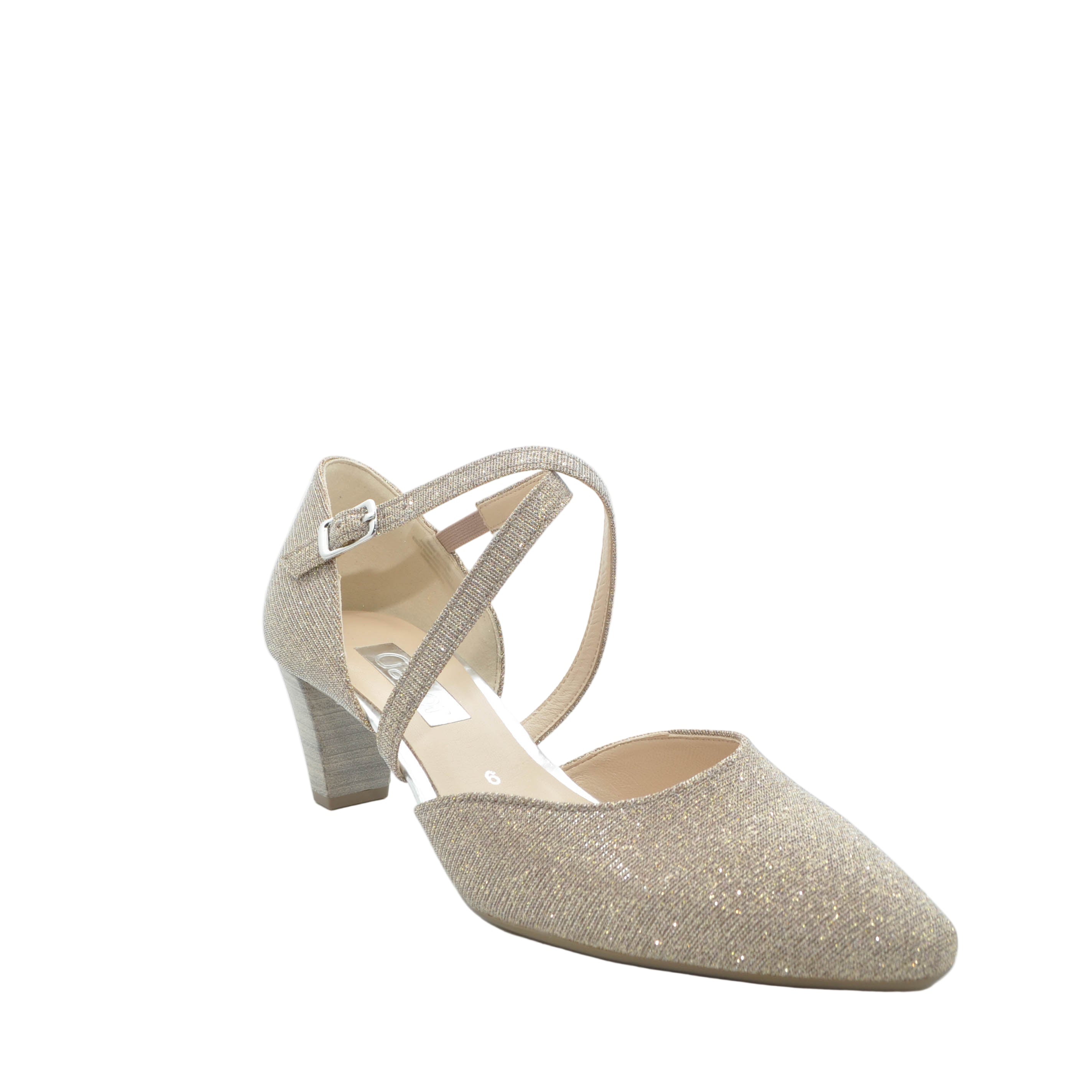 Make a sparkling statement , where rose glitter catches the light with every step. Elegant criss-cross ankle straps deliver both style and security, while the pointed toe and refined heel create an effortlessly chic silhouette. Whether you're dancing at a celebration or turning heads at an evening event, these shoes blend Gabor's signature comfort with undeniable glamour. Slip them on and let your feet do the talking—because sometimes the best accessory is one that makes you feel absolutely fabulous.